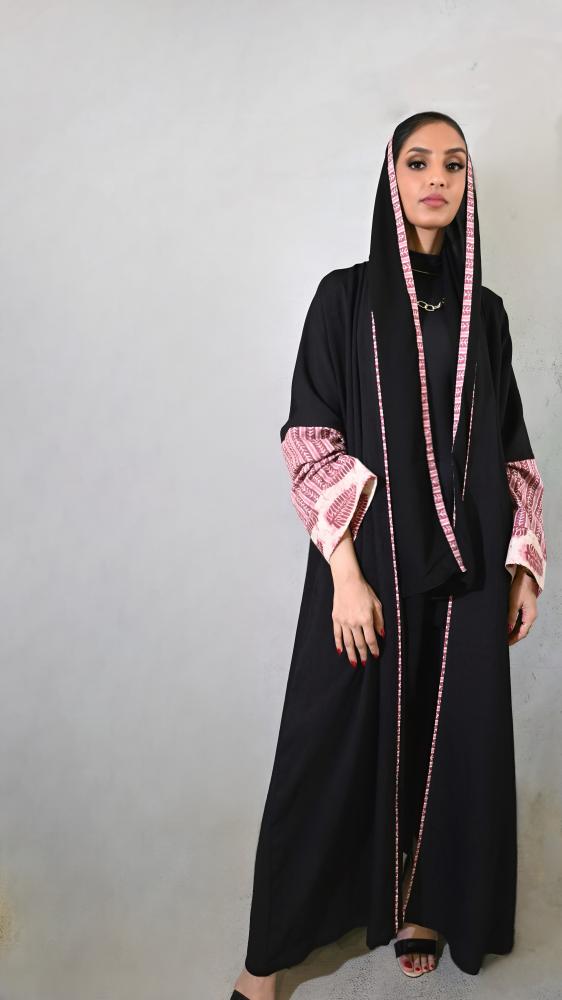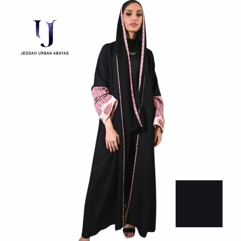 عباية أوندا وردي كريب بحريني مع ليزر أسود – جدة أربن (JU25-045)